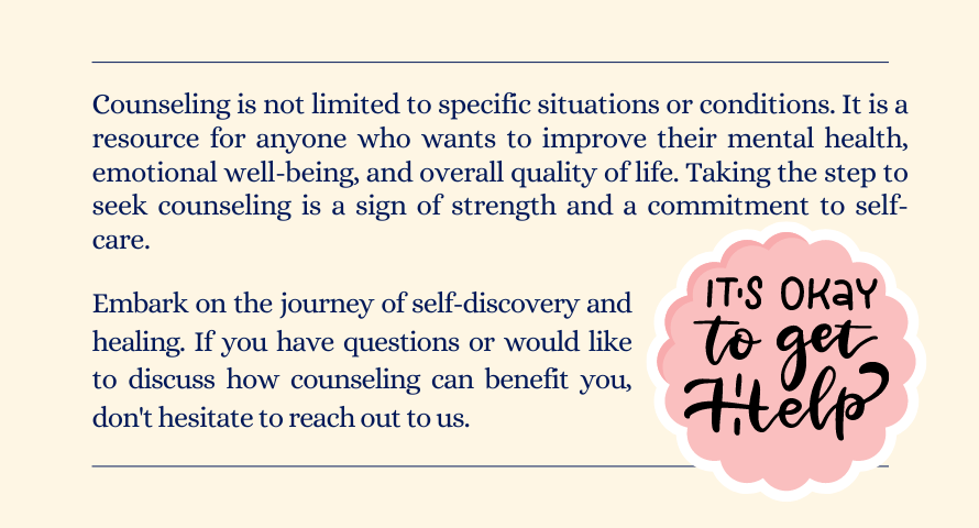 Who can take counseling? – We believe that counseling is for everyone, and there are no limitations on who can benefit from the transformative experience.
